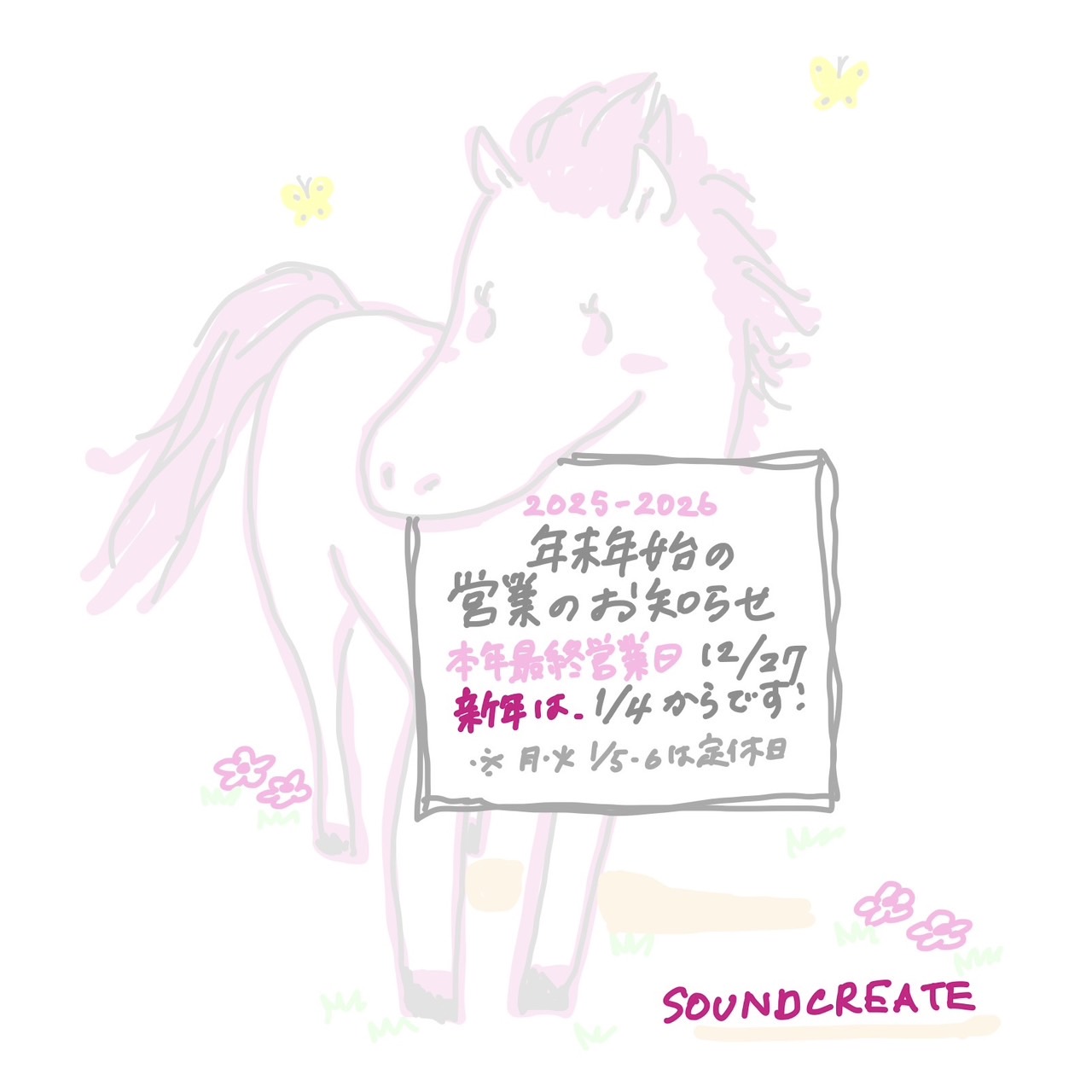 いつもご愛顧いただきありがとうございます。 サウンドクリエイトの年末年…