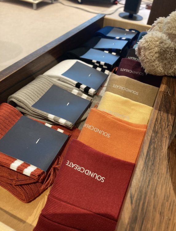 実はひっそりと、昨年の秋から(2024/9~) SOUND CREATE ロゴ入り靴下を展開しはじめております。