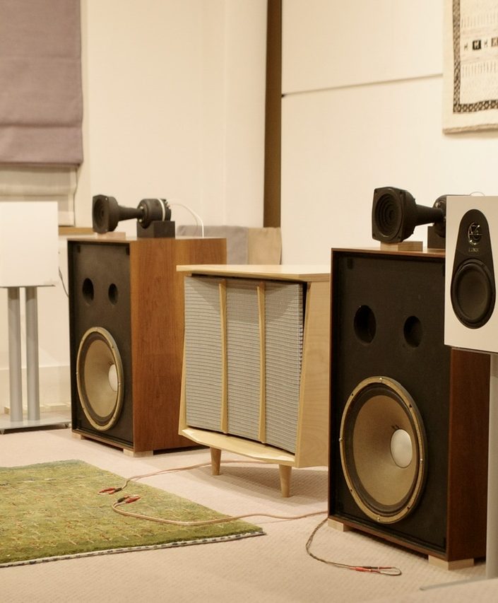 JBL Harlanの形をしたシングルスピーカー(ステレオ仕様)や、EAMS E4から着想を得たモデルも。