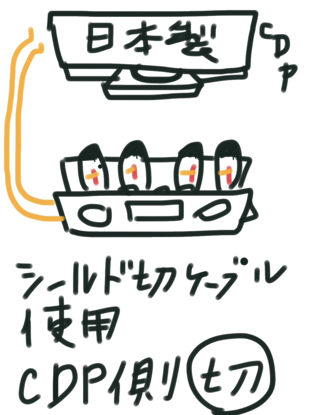 再度言ってしまいますが、バランス接続を使うことは滅多になく、アンバランスケーブルかシールド切りケーブル(※)を使うことがほとんどです。あとは電源アースをどうするか、電源の順番をどうするか・・。
