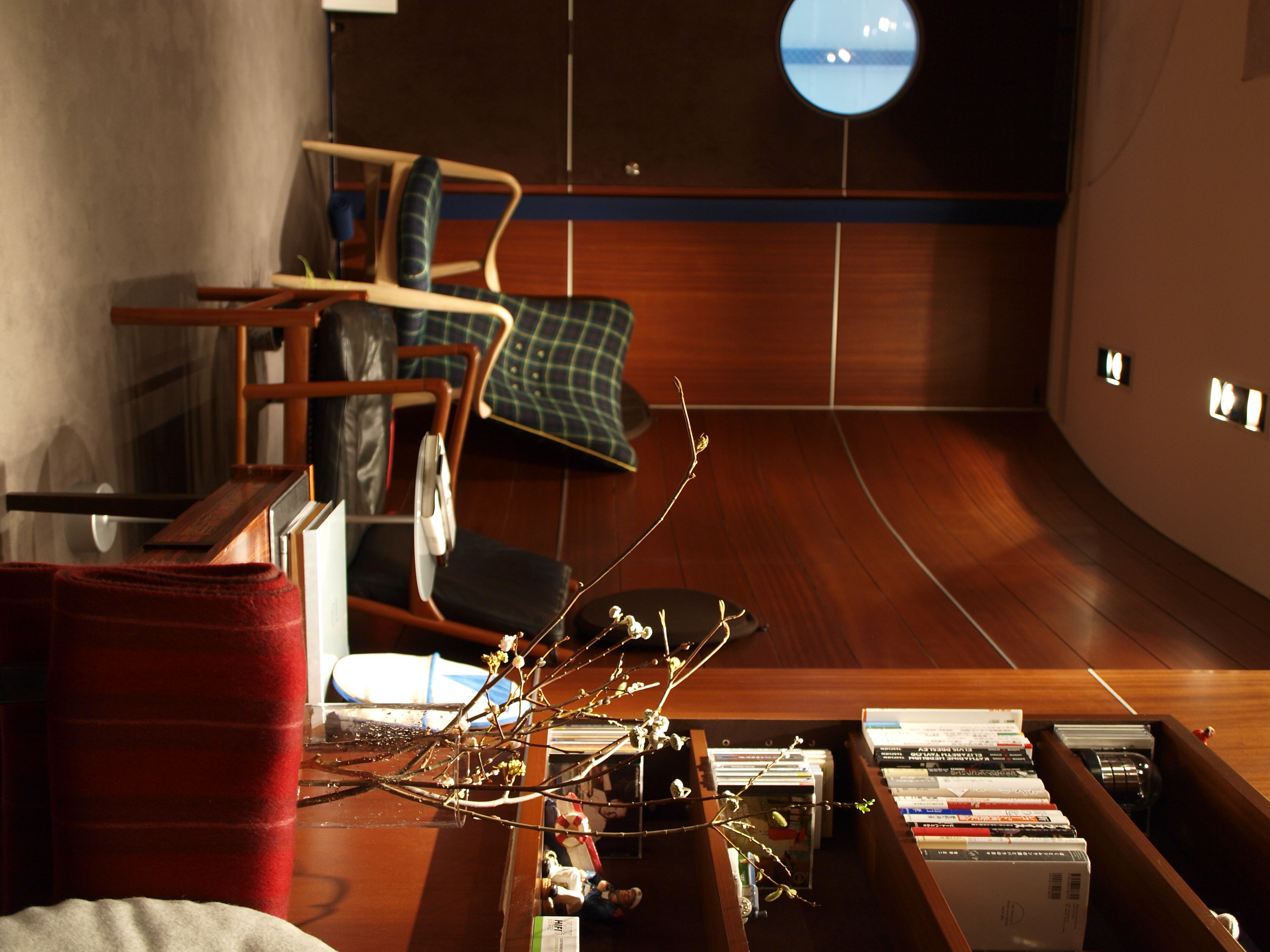 オーディオや家具が主役の店内なので、ひっそりと、そこにあるのが良いかしらと思いました。