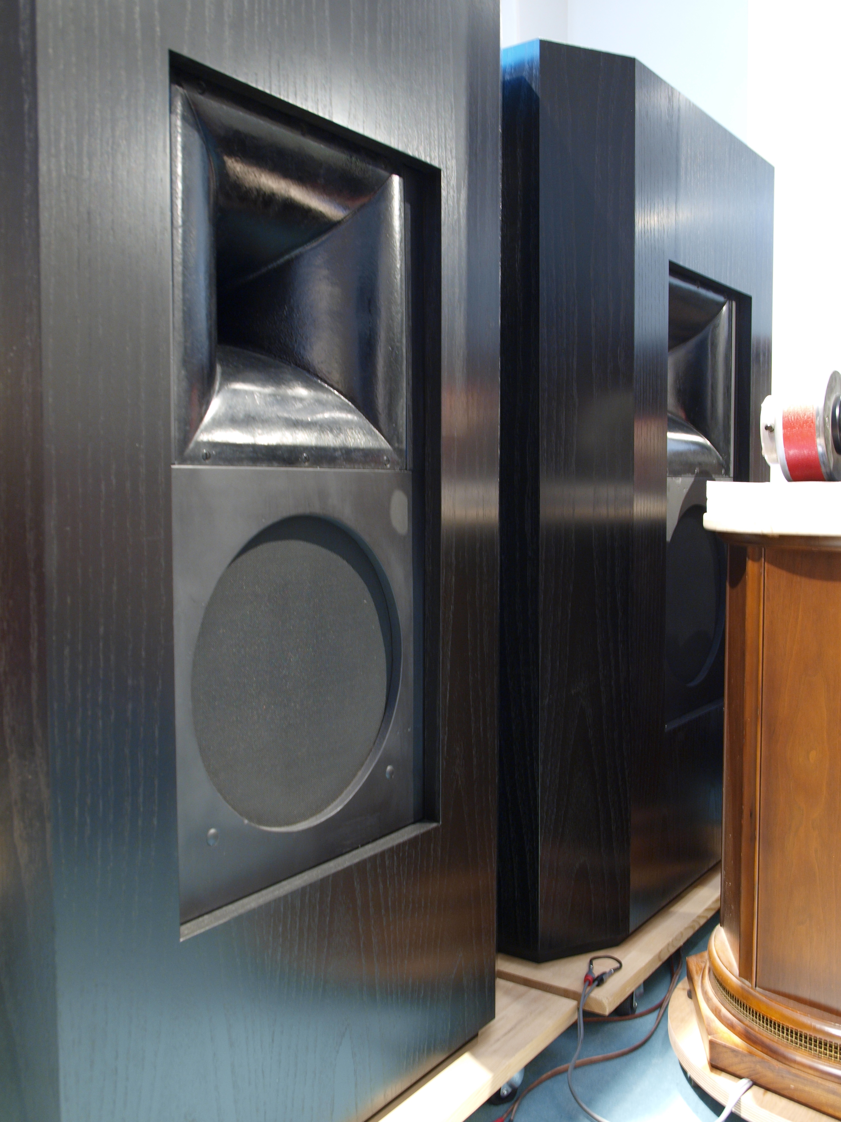 実は、弊店、同時期のものを2ペア持っておりまして、このような黒いコの字型バッフルに取り付けたものもあります。