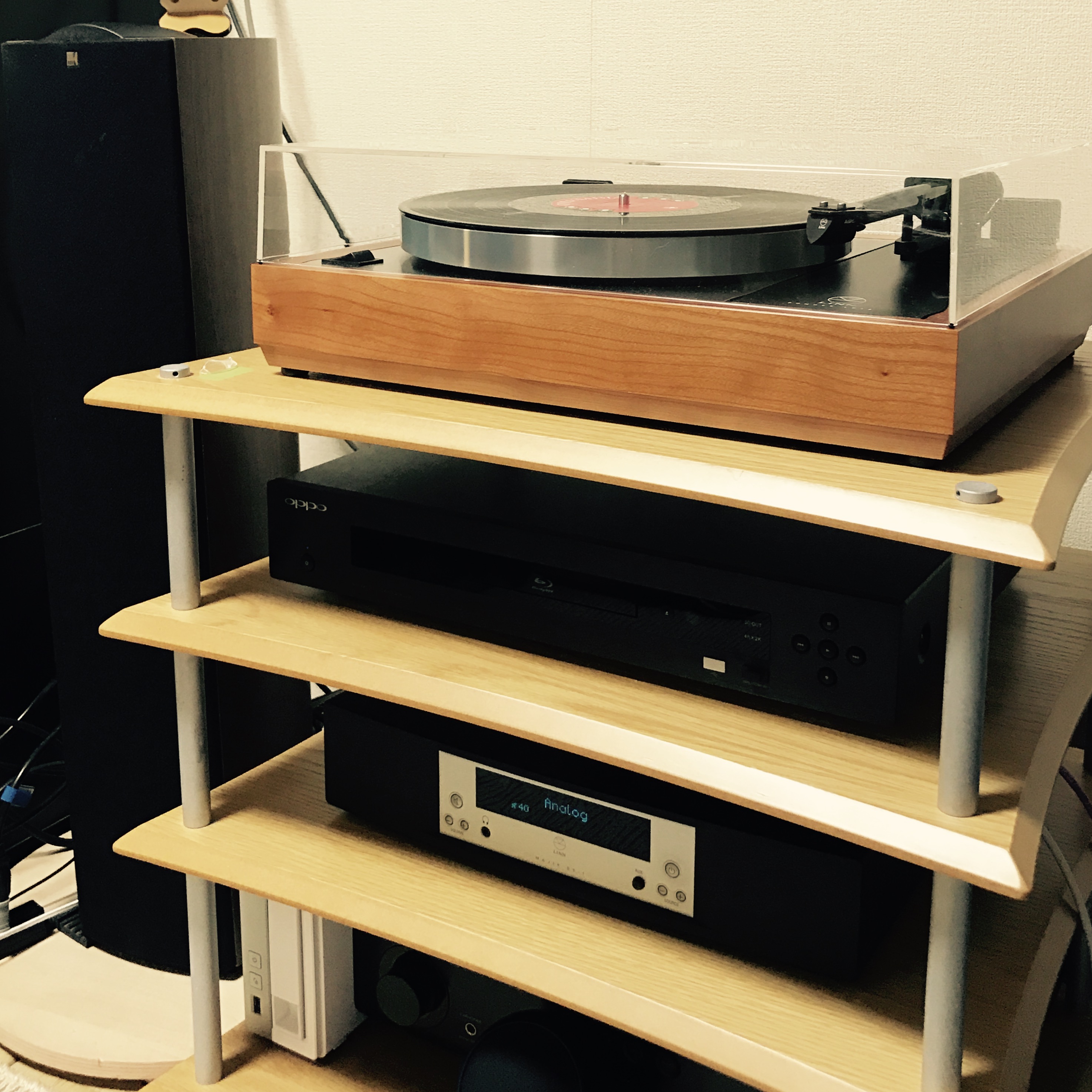 お客様は、PIEGAの手のひらサイズのスピーカーから始まって、LINN DS-I、KEFのトールボーイ、OPPO、ラック・・と丁寧に積み上げて、「音楽」への尽きない興味をオーディオから得られる充実した音に変えていかれました。