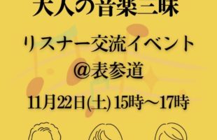 2025.10.23 INFORMATION, お知らせ, イベント Podcast「大人の音楽三味」 リスナー交流イベント PODCAST「大人の音楽三昧」のスタート1周年を記念して、リスナー交流イベント…