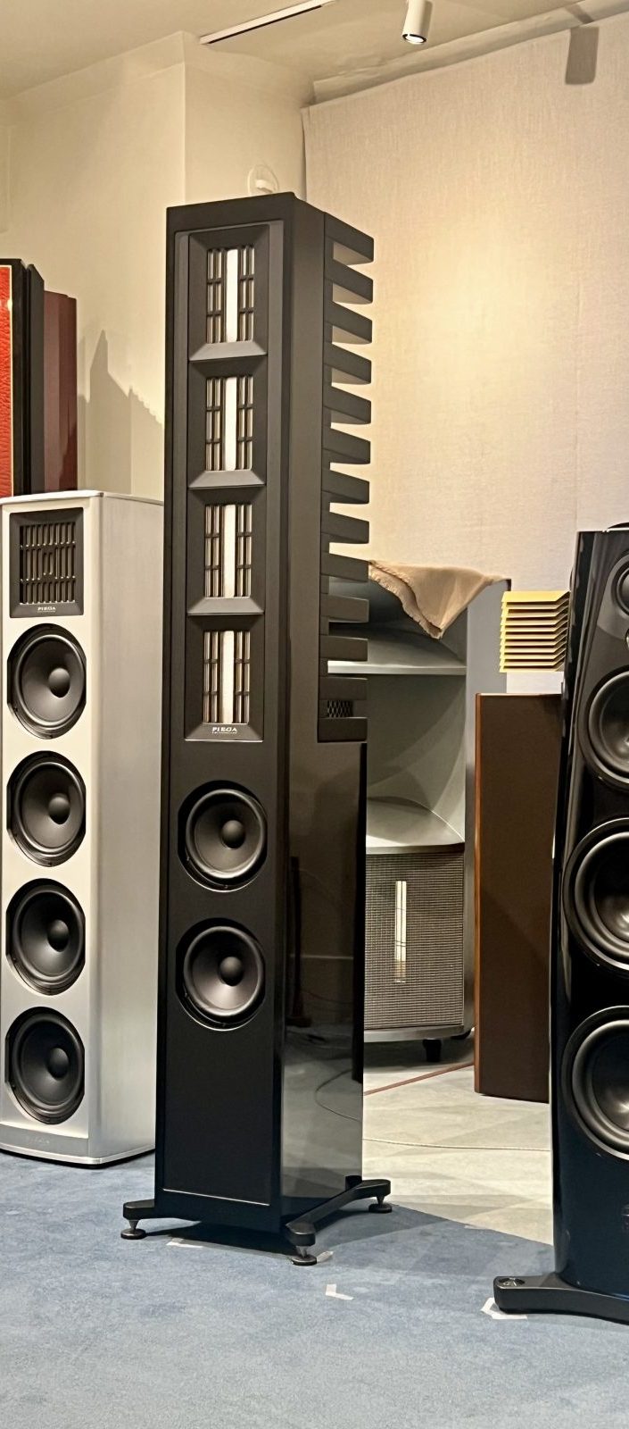 その音響的なデザインは、165㎝の高さが持つであろう圧迫感もうまいこと回避して、音にも見た目にも抜け感を演出。
