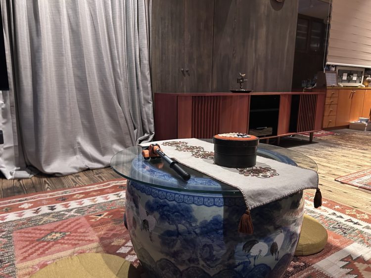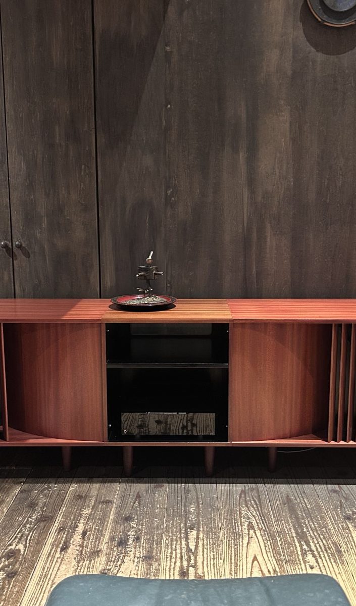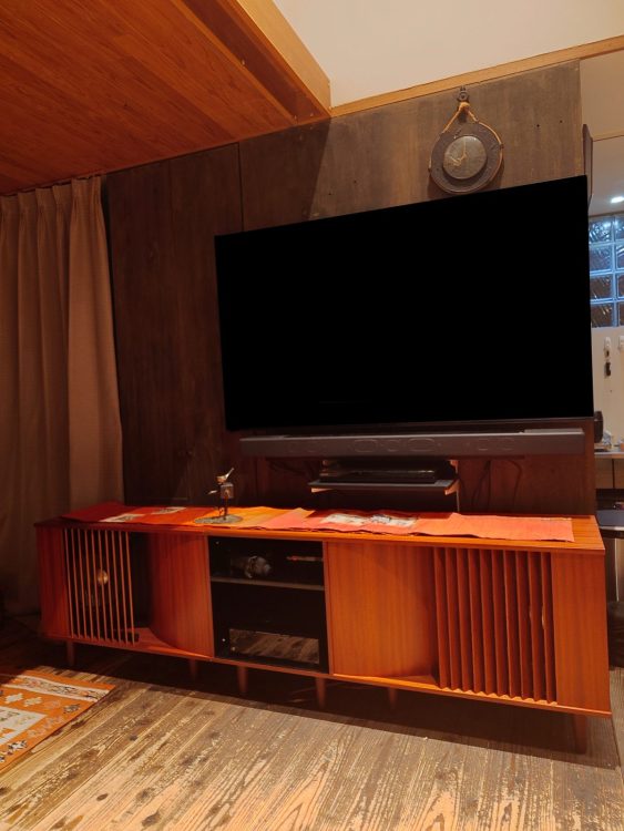 ご納品後、テレビの壁付け工事をされてテレビの音声もスピーカーから出力できるように。SCオリジナルMinigonモデルは素敵なお着物の生地をアレンジされて、おめかししていただきました。また、Dual CS618Qもお求めいただき、アナログ、デジタル色々なソースで毎日楽しんでいますと、とても嬉しいメールもいただきました。