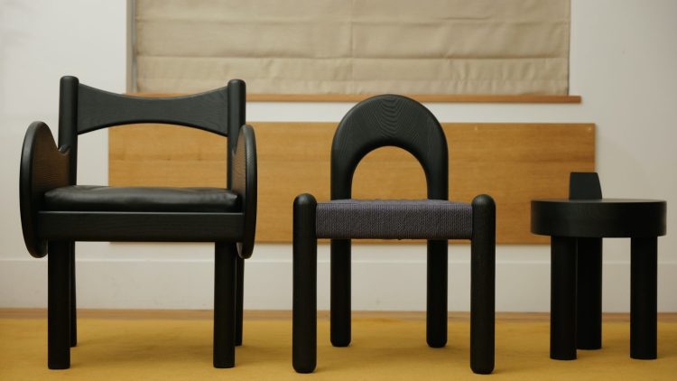 素朴だけどキャッチーなフォルムと、素材・質感から醸し出す雰囲気。それをプロダクトとオブジェの中開的な表現でチェアやキャビネットなどの家具に落とし込みました。
